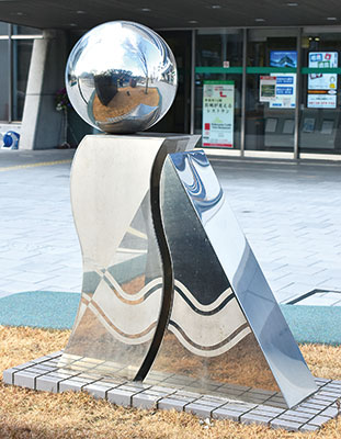 実はこれ、同じタイトルの作品が多数あるシリーズもので、東京・池袋の東京芸術劇場入口や仙台市地下鉄長町南駅前、秋田県や島根県の美術館など、日本各地に設置されています。大きさや形はそれぞれ異なりますが、すべて波を連想させる形になっています。和歌山市役所前広場にあるモニュメントも、このひとつです。