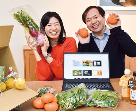 「野菜や果物、魚、ジビエ肉のほか、味噌やジュースといった加工品など、県内の生産者を直接訪問しておいしいと思ったものだけをセレクトしているインターネット上の市場です。新型コロナウイルスの影響で海外出張が激減した2020年秋、社内ベンチャー制度に応募し、早速、12月にオープンしました。今年2月9日時点で約40商品あり、購入すると生産者から直接届きます」