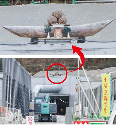 「海南市内の国道42号、 JR冷水浦駅近くから山側を見ると、工事中のトンネル入り口上に、牛の角のようなものが見えるのですが…」。和歌山河川国道事務所に聞くと、「安全を祈願し、山の神様への敬意を表す『化粧木』です」と教えてくれました。