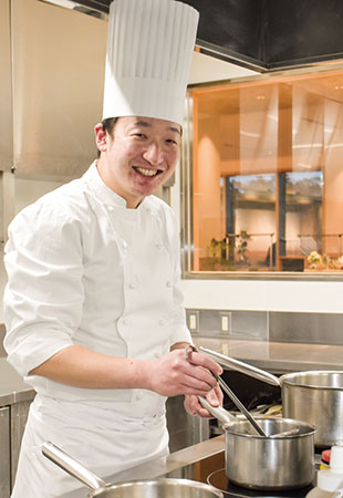 「和食店を営んでいた両親の影響です。ロイネットはオープン時から勤め、16年。婚礼・宴会料理を有名店のシェフが監修していた時期があり、県外の様々なシェフから料理への考え方や調理技術を教わったことが、今のこだわりにつながっています。ワインに合う食材を調べるため、飲めなかった酒を飲み、組み合わせを探求しています」