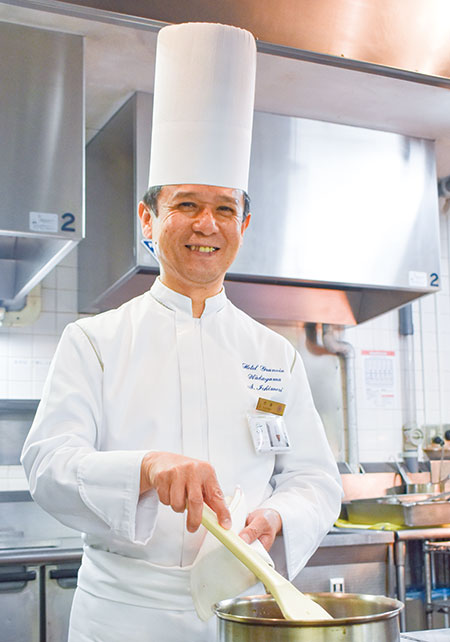 開業35周年を迎えたJR和歌山駅前のホテルグランヴィア和歌山で総料理長を務める市森重宏さん(57)。関西圏のホテルやレストランで修業を重ね、和歌山に腰を据えて18年です。「多くの現場を経験したことで、状況によって対応する調理技術を学べました。すべての縁に感謝しつつ、食材の宝庫、和歌山で腕を振るっています」と話します。