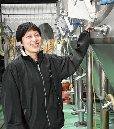 「大学時代、先生に勧められた日本酒を飲んではまり、『お酒を造る技術を学びたい』と平和酒造に就職しました。社でビール造りが始まったのは2016年。仕事終わりに利き酒をするのが恒例で、ある時、ビール嫌いの上司が、とあるクラフトビールを飲み、『おいしいな』と感動したのがきっかけでした。一番ビール好きとの理由で私に白羽の矢が立ったんですが、ゼロからのスタート。他の会社に出向いて教わりながら試行錯誤を続け、今に至ります」