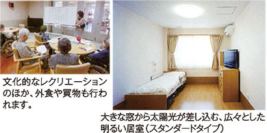 緊密な医療連携やサポートも万全です。安心の24時間緊急連絡態勢を準備。希望者には協力医療機関への送迎サービスを行い、継続的な健康管理に努めます。また、手厚い介護・看護・リハビリ体制を整え、専門スタッフによる機能訓練を実施しているほか、多彩なレクリエーションが日常に楽しみと潤いを与えます。