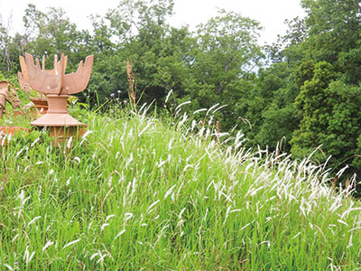 風土記の丘西端にある大日山35号墳には、復元された埴輪群が野外展示されています。それをバックに見るチガヤの群生が、私のイチオシです。でも定期的に除草をしてくださるので、その光景に出合えないこともあります。