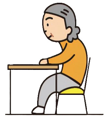 また、座っている姿勢も意識してみてください。イラストのように腰を丸めた姿勢を長時間とると、筋肉の活動が弱くなり、尿漏れの原因になります。この機会に是非、日ごろの姿勢を見直してください。