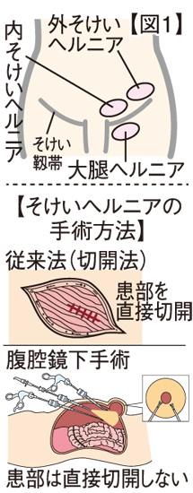 最近の治療は腹腔鏡手術が主流です。麻酔で眠っている間におへその近くを3カ所、5㎜〜1㎝程度切開し、腹腔鏡という内視鏡を入れ、お腹の中から腫れている部分を治療します。従来の切開法に比べ、病巣部の痛みはほとんどなく、基本的には翌日より社会復帰が可能です。日帰りの基準は、同居家族がいる、術後排尿ができる等です。ただし、腸閉塞を合併している場合などは切開法となります。