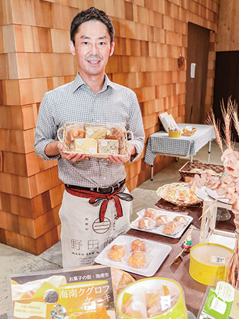 「たった3つだった商品が今は常時、約20種類です。イチオシは海南市下津町大崎のひじきを使った〝海南クグロフ〟。フランスの発酵菓子クグロフを参考にしており、豆やかんぴょう入りの物もあります。『今まで乾物を口にしなかった子どもが、ここのスイーツをきっかけに食べられるようになった』とのうれしいお言葉はよく聞かせていただきます」
