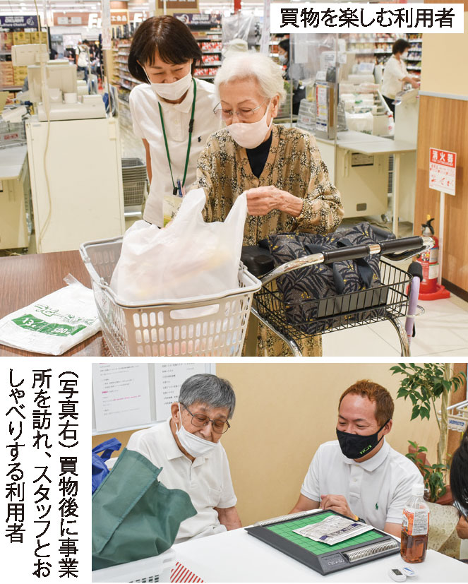カートを押しながらスーパーを巡り、自分で商品を選んだり支払いをする「ショッピングリハビリ」。龍神整形外科運営「ひかりサロンりゅうじん」が、要支援者・要介護者の健康増進と介護予防、社会参加を目的に行っている通所介護事業です。自宅から送迎で商業施設へ行き、体操の後、スタッフの見守りのもと買物を楽しむサービス。目当ての商品を探すうち、歩数が伸びて適度な運動効果も。「生活に楽しみができた」と喜びの声も多く、心も体も元気な高齢者が増えることが期待されています。
