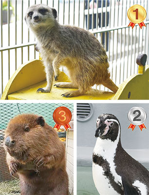 投票数は856票。この結果、143票のミーアキャット「わかば」が1位、119票のフンボルトペンギン「ノエル」が2位、99票のアメリカビーバー「ひざし」が3位でした。