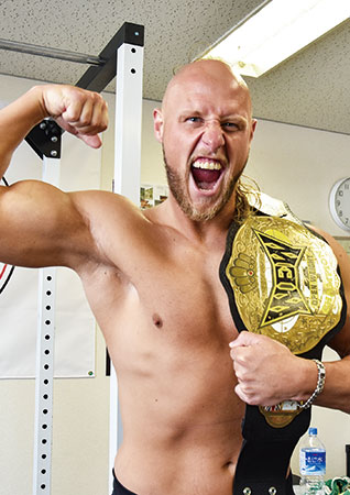 「5歳の時にテレビで見て大ファンになりました。小学校でプロレスごっこに興じ、段ボールで作ったチャンピオンベルトを腰に巻いていました。中学校で本格的にレスリングを始め、ニュージーランドの地区大会で優勝。高校ではアメリカ、オーストラリアとの3カ国大会での優勝を始め、国際大会でメダルの常連に。その後、オークランド工科大学を経て2010年にアメリカへ渡り、プロレス団体のチーム3Dに加入、トレーニング漬けの日々を送りました。得意技は、パワーボムやラリアット。長身なので、首を持ち上げて背中から落とすチョークスラムはよく使います」