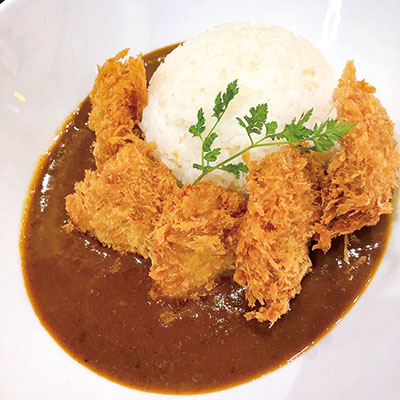 花奈子「ボリューム満点のヘレカツカレーです。一口サイズのカツを5枚のせているので、ガッツリ食べたい働き盛りの男性がよく注文してくれます」
