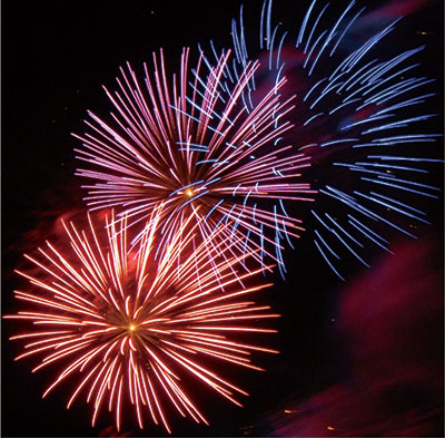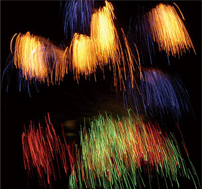 割物の一種。打ち上げられた後、中心から外側に向かって広がる「牡丹」は、花火大会でおなじみの一発です。