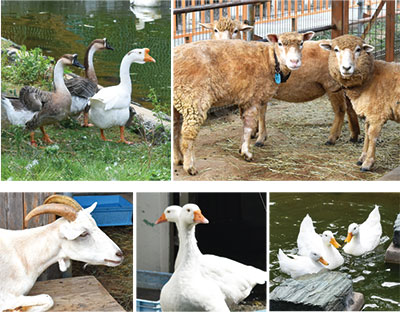 ヨーロッパガチョウ(下段中央)は現在、童話園で過ごしています。原種はハイイロガンで、シナガチョウとよく似た見た目をしています。