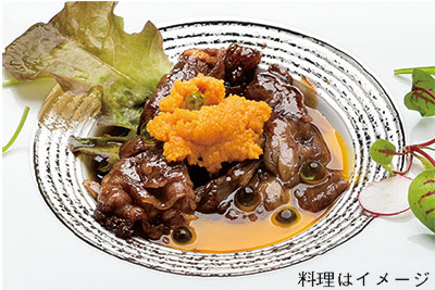 「すき焼き5品を出すコースです。内容を毎月替えるのにこだわり、野菜やフルーツの旬に合わせ、料理を考えています。カウンター席の前で焼くので、お客様の反応をダイレクトに感じられ、『こんな食べ方あるんや』と驚き楽しんでくれるのが、うれしいです」