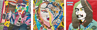 「定年後に新しい趣味をと思っていた時、19歳のころにキング・クリムゾンの『クリムゾン・キングの宮殿』のジャケットを自室のドアにクレヨンで描いた(同Ⓓ)のを思い出したんです。ただ、絵を描くのが苦手な上、材料費を抑える方法を考え、貼り絵に行き着きました」