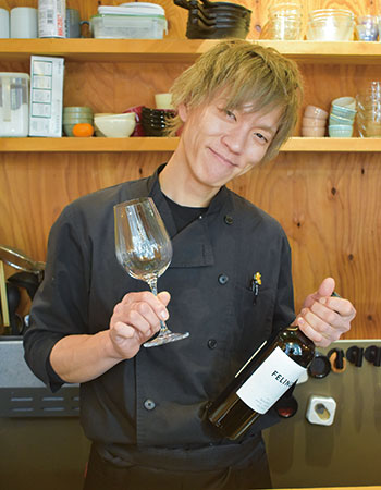 「キッチンカーで買ってくれた人が、店に来てくれるようになりました。昼はバーガーや丼を、夜はフレンチバルとして、エビのアヒージョや牛タンのシチューなど、お酒に合う料理を提供しています。私はソムリエの資格を持っているので、お客さんの気分に合わせたワインを紹介することができます」