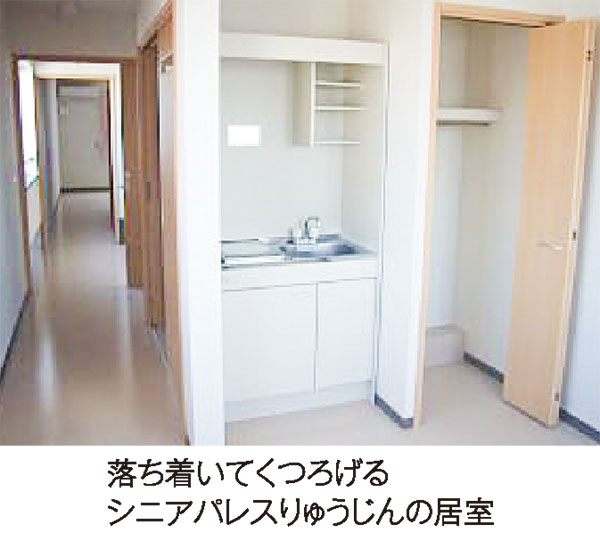 医療法人真正会 龍神整形外科が運営するサービス付き高齢者向け住宅「シニアパレスりゅうじん」は、ゆったりと落ち着ける快適な居室にナースコールを設置。緊急の際は看護師やスタッフが駆けつけるので安心です。また、個浴室が2カ所あり、介助を受けながら気持ちよく入浴できるのも特長。スタッフは「いつまでも笑顔で過ごして頂きたい」をモットーに、入居者の話にじっくりと耳を傾けるなど丁寧なケアを心がけており、工夫を凝らした楽しいレクリエーションも好評です。