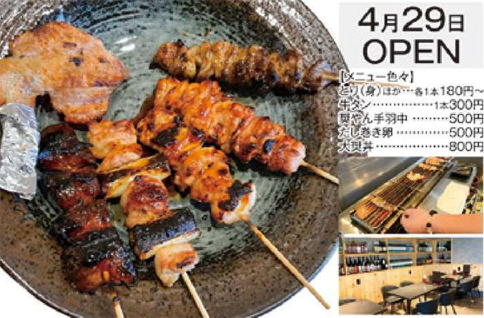 | 粉河加太線沿いに4月29日オープンしたやきとり店。1本1本丁寧に焼き上げた鹿児島県産の新鮮な若鶏は絶品! 1本180円~と大衆価格ながら、落ち着いた内装で、家族連れやカップルでも居心地良く過ごせます。イチオシ一品料理「奨やん手羽中」は、チリパウダーのスパイシーな風味がお酒との相性バッチリ! |