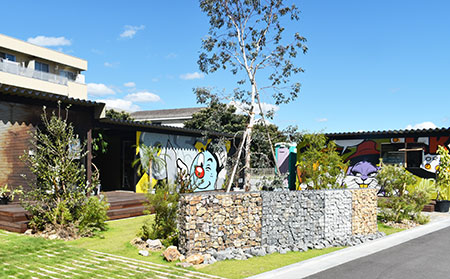 ひときわ目をひくポップなイラストが描かれたコンテナハウスの複合施設「commons(コモンズ)」。ラグ、コースターなどの工房、観葉植物専門店と共に並ぶのが、フルーツサンドのwaldo(ウォルドー)です。店長の堀江良樹さん(44)は「クリームたっぷりで、しっかり満足してもらえる自信作です」と笑顔を見せます。