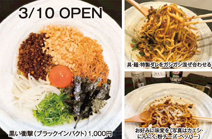 | まぜそばに命を注いだ店主が「和歌山食材の魅力を伝えたい」と県産食材にこだわったまぜそば専門店をオープン。湯浅のしょうゆや那智黒の水あめを使った特製ダレに、具材の背脂&豚ミンチ、麺をしっかり絡めて頬ばれば、ガツンとくる旨さが脳天を直撃します! 約10種類の調味料で自分流に味変も楽しんで! |