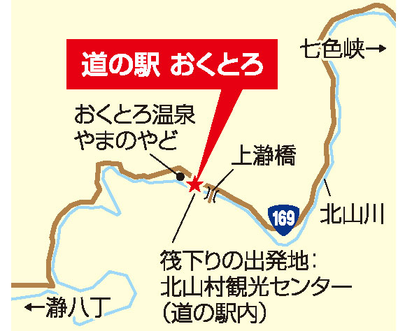 | 東牟婁郡北山村下尾井335 ☎0735-49-2324 営業時間/観光センター 9:00~17:00 おくとろ温泉 11:00~20:30 ![]() |