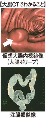 ただし、突然の発症や急速な増悪、貧血、予期しない体重減少、血便、微熱、消化器悪性腫瘍の既往歴や家族に病歴のある人がいる、50歳以上である等に該当する方は、器質的疾患を否定するためにも検便検査は必要で、陽性であれば精密検査して、前処置の下剤が少量で済む大腸CT検査(写真)や同時に治療できる大腸内視鏡検査などが選択できます。消化器病専門医、大腸肛門病専門医にご相談ください