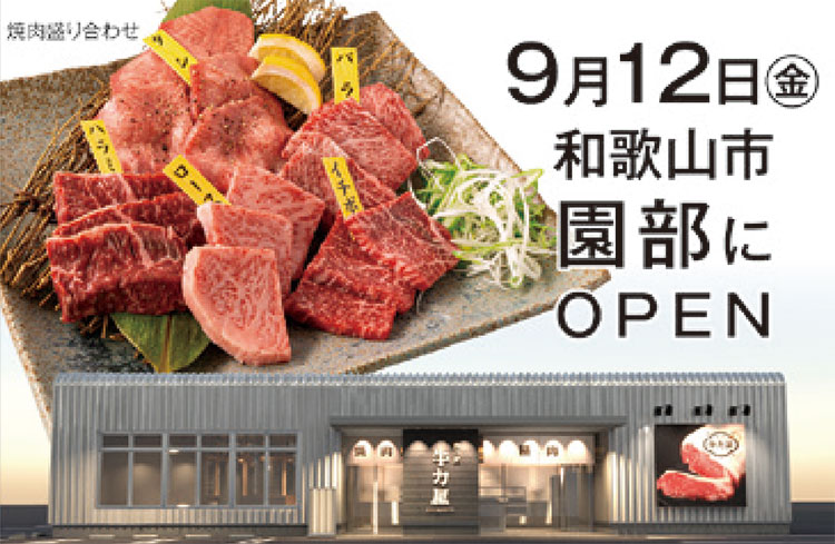 とろけるサシ! 旨味あふれる赤身! 上質牛に熟成肉! 独自ルートで仕入れたブランド牛からお手頃価格帯まで幅広くラインナップする精肉店が粉河加太線沿いに誕生。併設の焼肉店では、その時期一番美味しい国内産の牛肉をいただけます。テーブル席や掘りごたつなど全50席。家族や仲間と共に肉の宴を開こう!