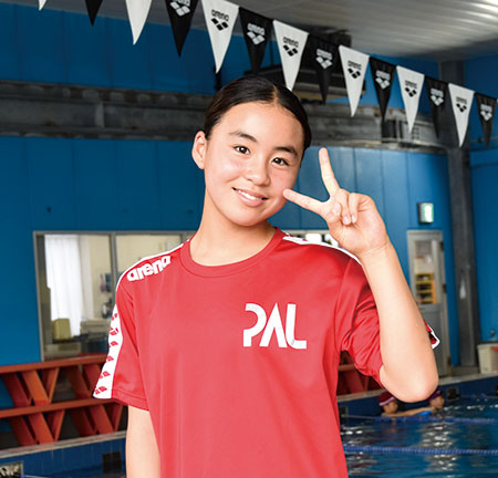 「私がいま水泳を頑張れているのは、仲間やコーチ、家族が応援して支えてくれているから。感謝しています」と想いを語る。夢は3年後、目標とする池江璃花子選手と一緒にロサンゼルスオリンピックに出場すること。「そのためには飛び込みも、ターンも、息継ぎも、もっと頑張って速くならないと」とにこやかに笑った。