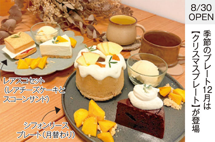 | シフォンケーキにケーキ、アイス、旬のフルーツが可愛く盛られた人気のシフォンリースプレート。一度にいろんなデザートを食べたい欲望を満たしてくれる一皿です。旬の食材にこだわった手作りお菓子は大人向けの甘さ控えめあっさり系で、罪悪感なくぺろり! 7~8種のスイーツを盛り合わせた季節のプレートも。 |