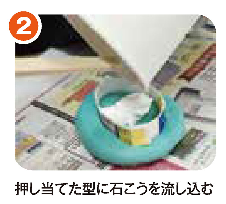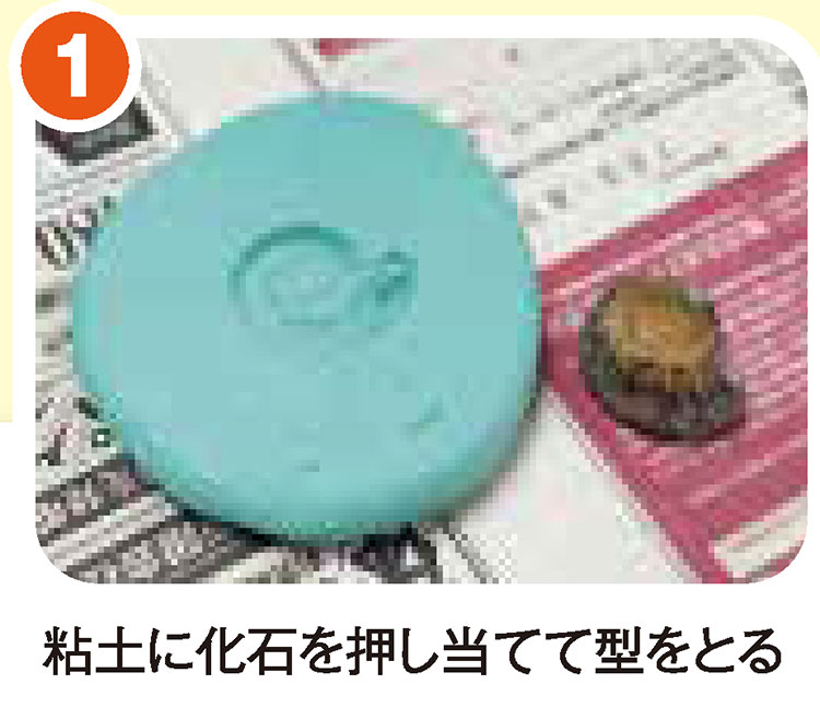 この博物館では、レプリカをつくる体験もできます! がおりんが挑戦したのは、アンモナイトの化石。粘土に化石の型をとり、そこに水で溶いた石こうを流し込んで作ります。ほかにも、模型に色を塗る体験会も開催されています。