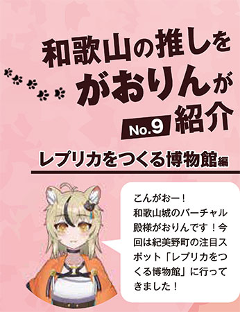 | 和歌山市応援 キャラクター がおりん 和歌山市の魅力を沢山の方に知ってもらうことを目標に活動している自称「和歌山城のバーチャル殿様」です。SNSでは市内の観光地や食を取り上げ、また、ゲーム配信を通じて全国のファンと交流しています。 |