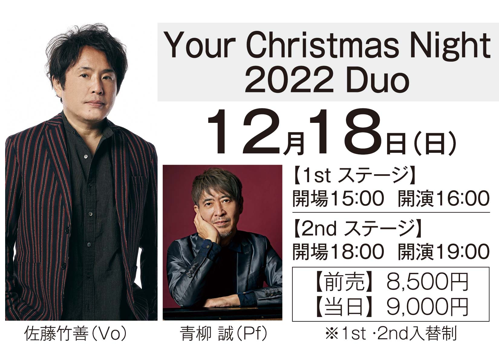 | SING LIKE TALKINGのボーカルとして活躍中の佐藤竹善が、年末恒例の「Your Christmas Night」ツアーで12月18日(日)、デサフィナードに登場します。共演は、ナニワエキスプレスのキーボード&サックスの青柳誠。クリスマスにちなんだ名曲にオリジナルを交え、落ち着いたジャズアレンジで聴かせてくれます。 |