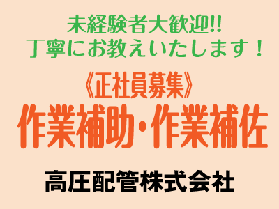 正社員高圧配管株式会社作業補助・作業補佐スタッフ募集(正社員)