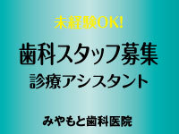 | 仕事内容 | 【診療アシスタント(常勤)】 安定して働ける正社員! 歯科スタッフとして新しいお仕事始めませんか。 ・診療の準備 ・患者さまのご案内 ・診療の補助など 診療がスムーズに流れるよう アシストをお願いします。 ☆日曜・祝日・土曜午後・週に1度半日はお休み ☆バイク・車通勤OK 丁寧な指導があるので未経験でも大丈夫! 気さくな先輩スタッフがしっかりフォローしますので 安心してご応募下さい。 患者さまに寄り添い、 居心地のよい空間を一緒に作っていきませんか。 まずはお気軽にお電話下さい。 |