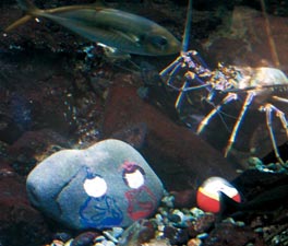 自然博物館では昨年に続いて7段飾りが、ガラス幅15㍍ある大水槽「黒潮の海」前に登場。加えて、「イセエビのかくれ家」と題した水槽内に、海南高校生らが描いた石雛を展示する。小阪晃学芸課長は「大水槽前のおひなさまは昨年も女の子連れのお母さんらに好評でした。イセエビは昼間、あまり動かず目立ちませんので、おひなさまをきっかけに注目してもらえれば」。