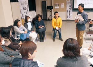 説明会後、約20人が監督や撮影に携わる製作チーム、美術や衣装の演出チームに分かれて話し合った。巽地区の池田慎一郎さんは「地元で映画作りは初めて。海南の人でさえ弥惣兵衛を知らない人がいるので、発信できる良い機会になる」と胸を躍らせていた。