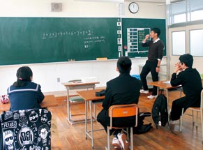 写真=中1、2の複式学級では山村留学生1人を含む3人が学ぶ