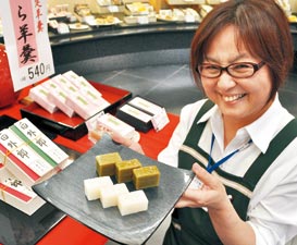代表的な和菓子ながら、近年は名古屋名物として定着し、一般の店であまり見かけなくなった外郎。駿河屋でも40年以上前は京都伏見店でよく売れたが、他の菓子が増え、現在は季節商品の一部で使われるだけだ。