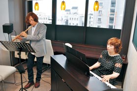 7室でフルート、ドラム、ボーカル、ギターなど15教室を開講。ピアノは初心者向け、ジャズ、アンサンブルと細分化している。歌や音楽、体操を組み合わせたシニア向けプログラムもある。