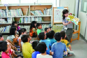元小学校教諭の岡さんは、子どもの活字離れを危惧(きぐ)し、司書に応募した。着任後は、ジャンル分けされていなかった本を整理し、表紙が見えるように並べるほか、読書感想文の課題図書を紹介するコーナーを設け、読みどころやあらすじの解説を添える。図書の時間に訪れた低学年には毎回、読み聞かせを行い、50冊以上読んだ児童に手作りのしおりをプレゼントする。