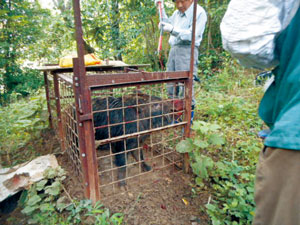 わな免許取得者は増え続け、過去3年だけでも銃の3・5倍に当たる465人。紀の川市北勢田の吉田安葵子さんは「5年前から米、柿、ハッサクがイノシシにやられ、米が半分ぐらいしか取れなくなった」と昨年取得。わなと金網を仕掛けると、被害はなくなった。