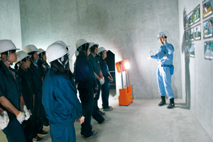 同社関西支店の大和幸夫支店長は「体力的に厳しいと言われる建設現場だが、完成した時の達成感はひとしお。ものづくりの現場の良さを若い時に知ってもらいたい」。山下弘晃教諭は「大きな工事現場を見る機会はめったにない。生徒が将来使う道路がどんな人の手でどのように造られているのか学び、キャリア形成の一助にしてほしい」と呼びかけていた。
