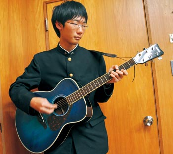 はっぴいえんどに吉田拓郎、たま、アルフィー、ボ・ガンボス…。昭和懐かしのフォークやロックをルーツに挙げるのは、桐蔭高校2年の中口環太さん。「和(わ)・ケンミンズ」の名でステージに立ち、和歌山を舞台にした歌詞を、フォーク調のメロディーにのせる高校生シンガーだ。