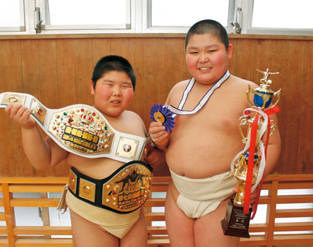 和歌山市少年相撲教室に通う2人が、東京・両国国技館で開かれた全国大会、国際大会で相次いで好成績を収めた。2016年12月の全日本小学生相撲優勝大会4年生以下の部で名草小学校4年の西出大毅(だいき)選手が優勝、2017年1月の白鵬杯国際親善交流少年相撲大会小学4年生の部で岡崎小学校の中西海心(かいしん)選手が準優勝。2人は共に角界入りを夢見ている。