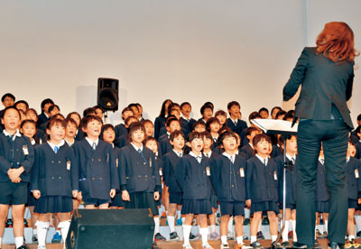 6年の大谷省造くんは「休憩時間も練習していました。表情豊かに歌うよう気をつけました」、3年の坂本悠くんは「先生の指揮をよく見て演奏しました」とにっこり。