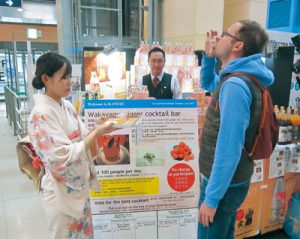 3月8日と9日には関西国際空港で外国人向けに試飲会を行った。日本酒、梅酒、みかん酒で割った3種類のフィズと、みかんジュース、梅ジュース味のクーラーを266人が試飲した。一番人気は、フィズが日本酒、クーラーが梅ジュースを使ったものだった。ドイツ人男性は「さわやかな風味で飲みやすい」、ロシア人男性は「素材の味がよく分かり、おいしい」と喜んでいた。