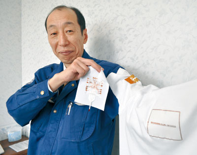 デジタルカメラやスマートフォンに使われる電気回路の配線板を製造する同社。16年に開発した、布地の凹凸に金属回路を密着させる技術では、織り方が密な化学繊維に限られ、同社の専用機械でしか取り付けることができなかったため、より多くの布地に手軽に付けられるよう改良した。
