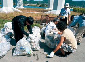 一方の太洋工業は27日、紀の川河川敷のせせらぎ公園で約100人が汗を流した。10回目を迎えた今年は、缶やペットボトル、ビンなどに分別し、22袋分が集まった。同社は「小さなゴミも懸命に探しました。環境保全への意識を高め、社員の家族や友人にも広がれば」と望んでいる。