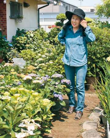 1人での管理が困難になり、種類を減らそうとも考えたが、友人たちが手伝いに来てくれている。「この庭から〝お嫁〟に行った株もたくさん。最近は周りでもアジサイを植える人が増えてきました。手間のかかる花ですが、砂山がアジサイの町になればうれしいですね」
