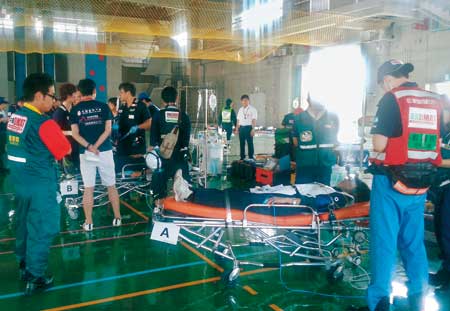南海トラフの巨大地震に備え、和歌山をはじめとした7府県と国、関係機関が連携し7月29日、医療活動訓練を行った。全国から集まった災害派遣医療チーム(DMAT)が和歌山県内の医療機関や港、空港などで取り組み、非常時の患者搬送や物資輸送、連絡体制を確認した。
